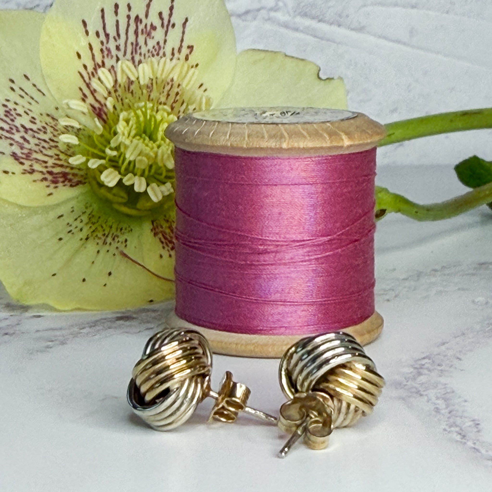 Add a contemporary twist to a classic design with these striking vintage 9ct gold bi-colour knot earrings. Expertly crafted in a timeless love knot silhouette, these studs feature alternating strands of yellow gold and white gold, creating a sophisticated two-tone jewellery effect. The intricate ribbed texture enhances the bi-colour contrast, allowing these 9ct gold earrings to catch the light beautifully and pair seamlessly with any mixed-metal collection.